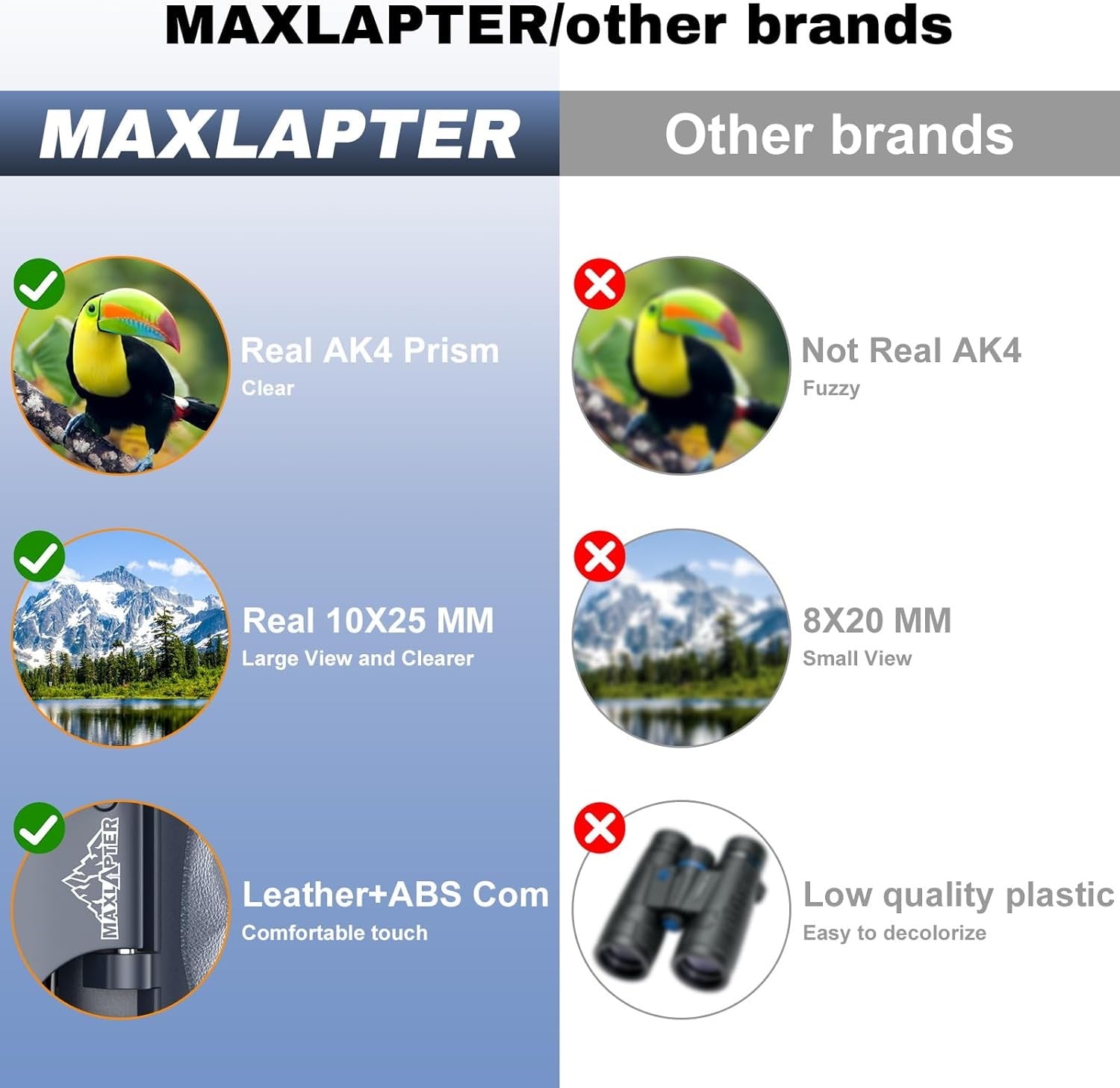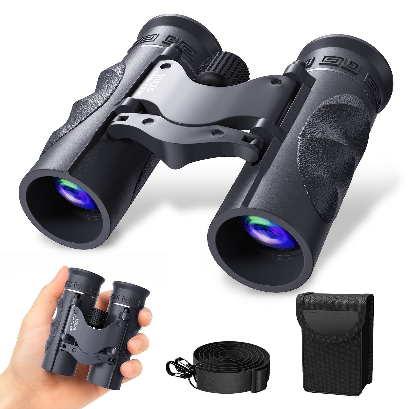 【Crystal Clear Viewing】The binoculars for adults are equipped with 10x25 magnification, BAK4 prism, and multi-coated lenses. These HD binoculars for adults and kids deliver bright, sharp images for bird watching, wildlife, and distant landscapes.
