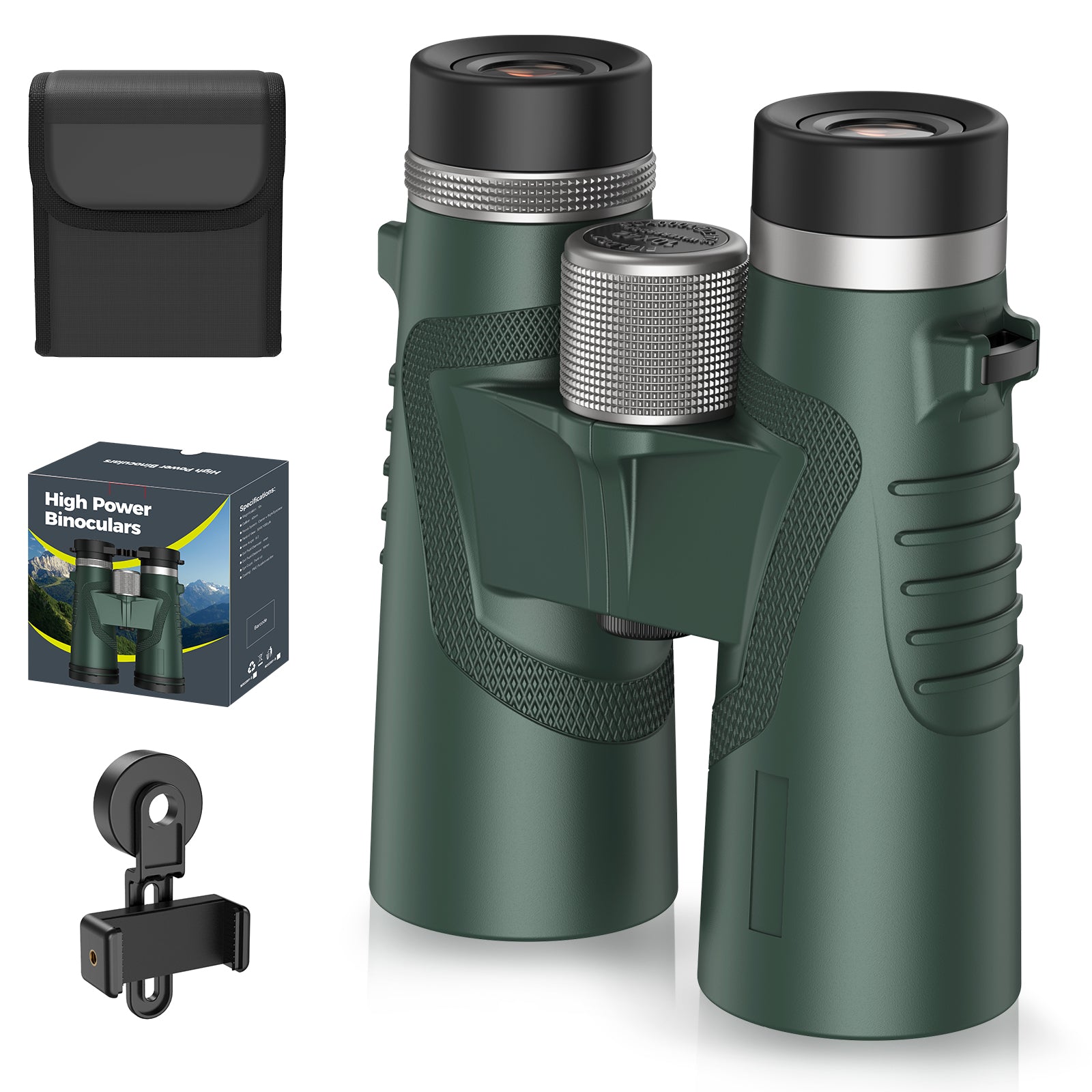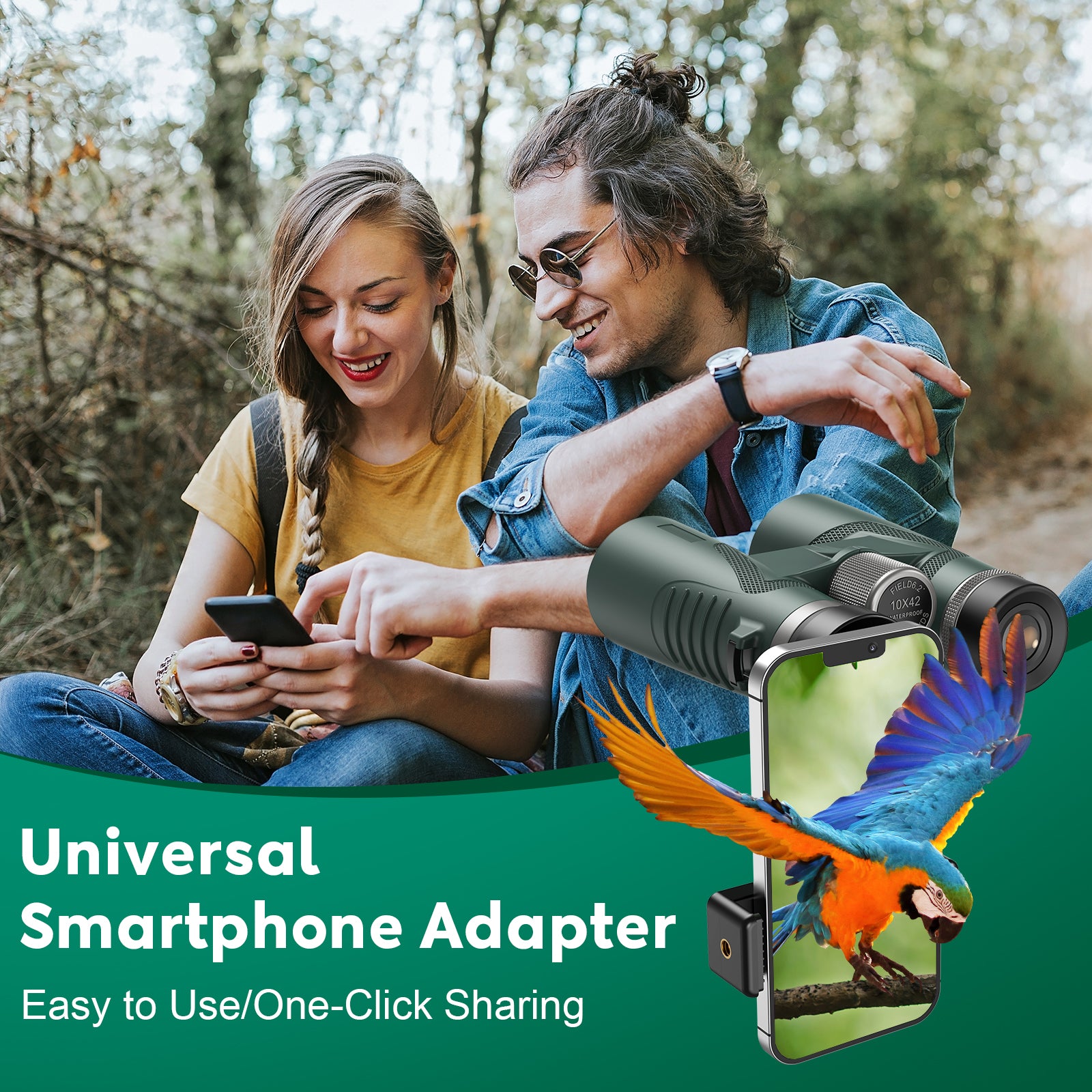 QUNSE 10x42 Compact HD Binoculars for Adults with Phone Adapter, Waterproof Binoculars with Fully Multi Coated Lens, High Powered for Bird Watching, Hunting, and Outdoor Sports (Green)