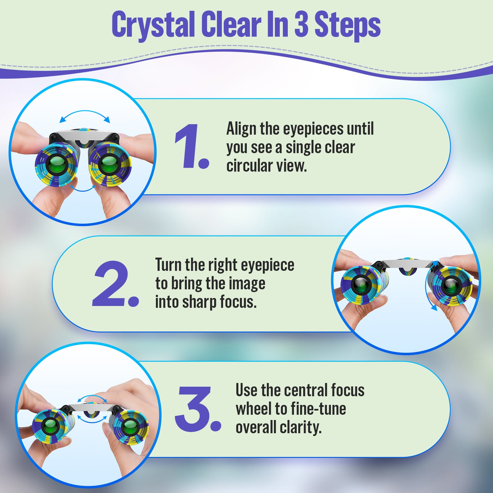 Easy to Use: One-hand operation with a center focus wheel design allows quick, easy focusing in three steps. Ideal for precise focus, making it perfect for both kids (8-12) and adults