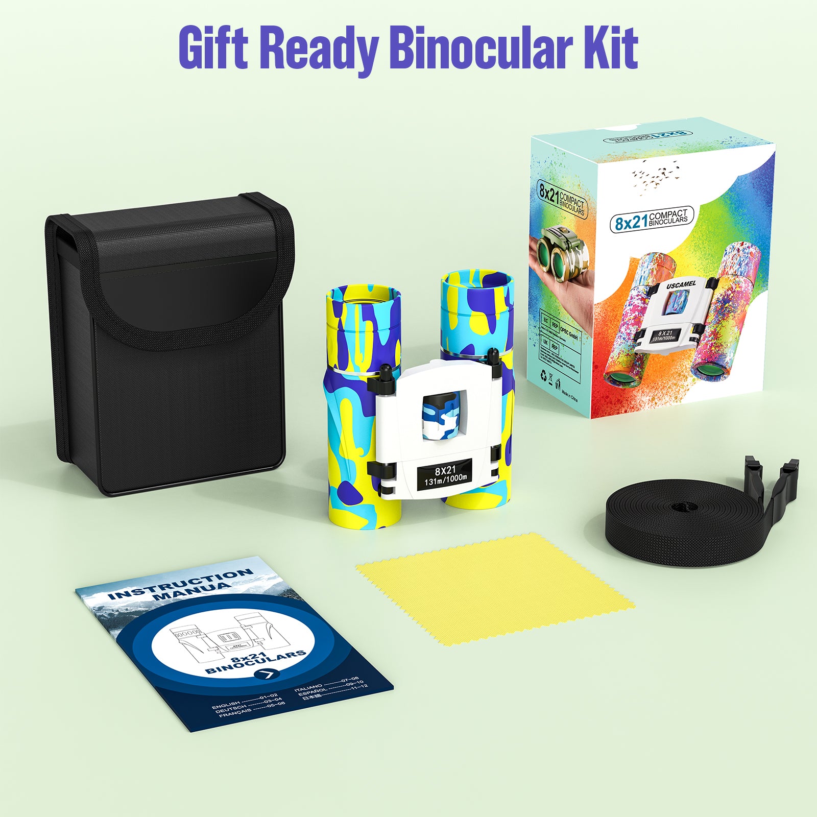 QUNSE 8×21 Compact Binoculars for Kids and Adults, Pocket Mini Binoculars, Ideal for Bird Watching, Travel, and Hunting, Great Gift for Boys and Girls (Yellow and blue)
