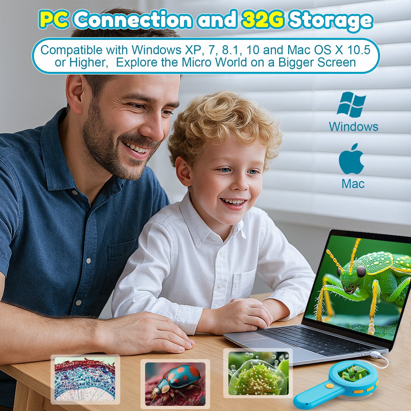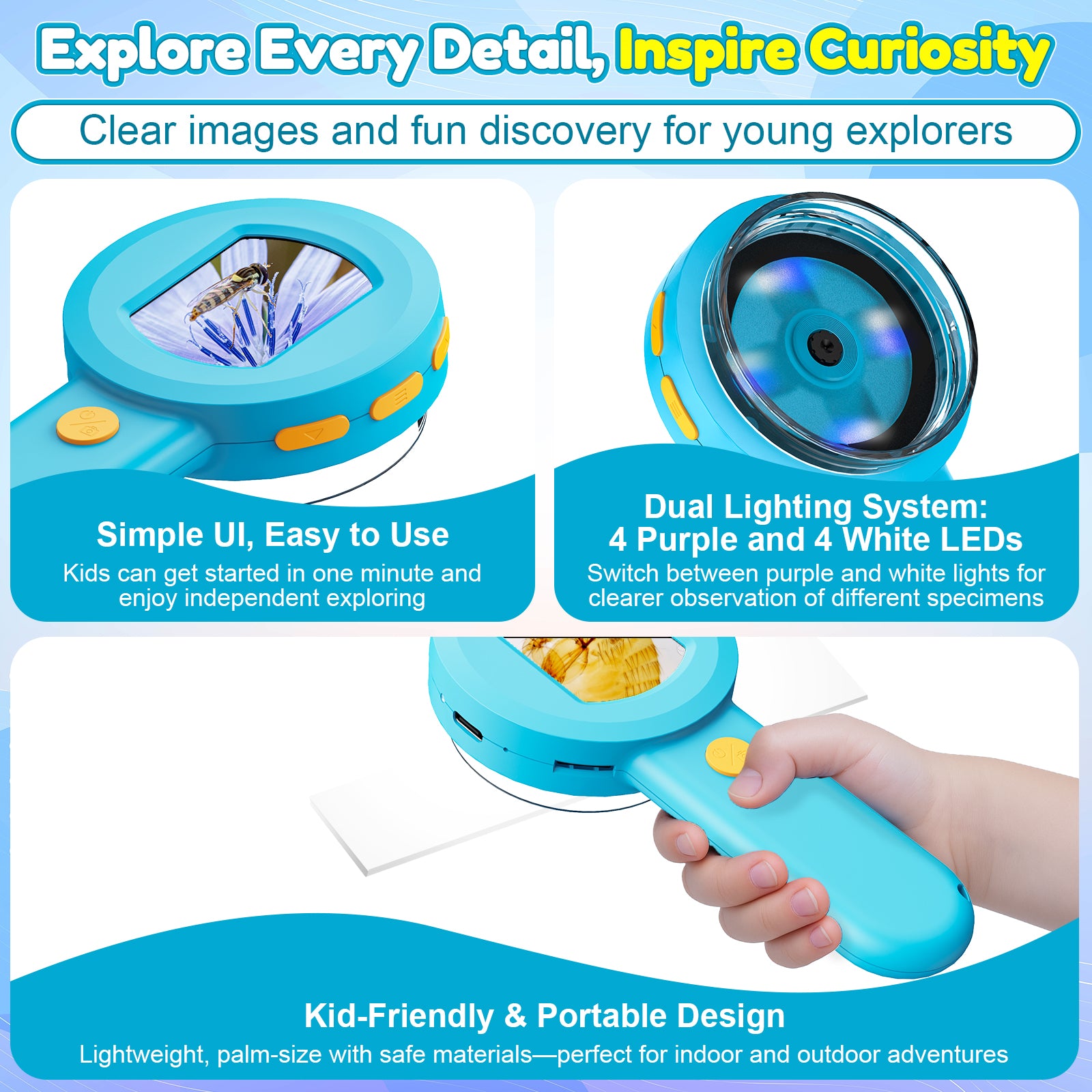 【100X - 400X Dual Magnification for True Scientific Discovery】This digital microscope exploration begins here—uncover the hidden world with 100X optical magnification and 4X digital zoom. Kids can examine insect wings, plant cells, and fabric fibers in stunning detail. Designed for curious young minds, this tool ignites hands-on STEM learning and encourages real scientific observation, making it a perfect digital microscope for young explorers.