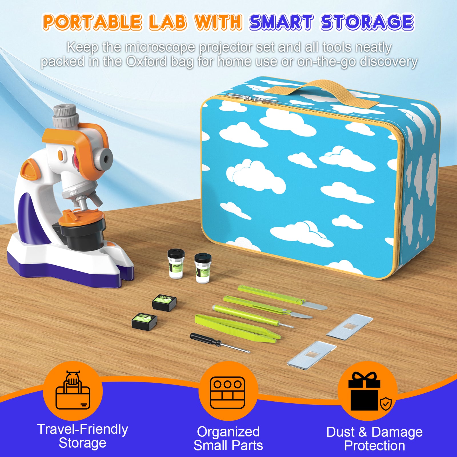 QUNSE Kids Microscope Projector Set with Dual Light, Large Focus Knobs, 20+ Accessories, STEM Science Kit, Standard Optical Microscope for Slides, Plants, Insects and DIY Experiments