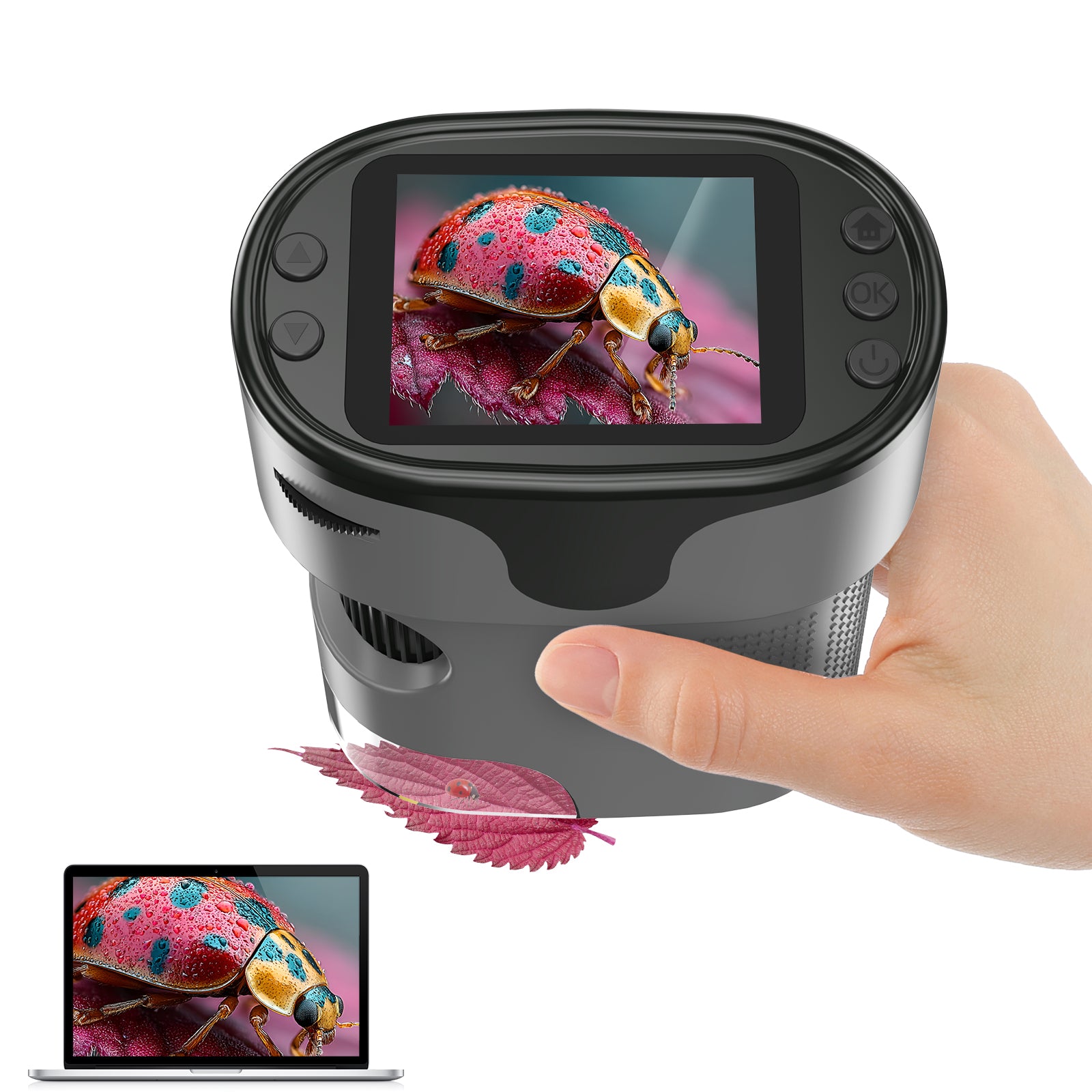 【Lightweight and Portable】Lightweight and only 0.3 lbs, this handheld microscope is small enough for kids to grip comfortably and carry on all their science adventures at home or outdoors. The handheld microscope’s ergonomic design ensures easy use during extended exploration.