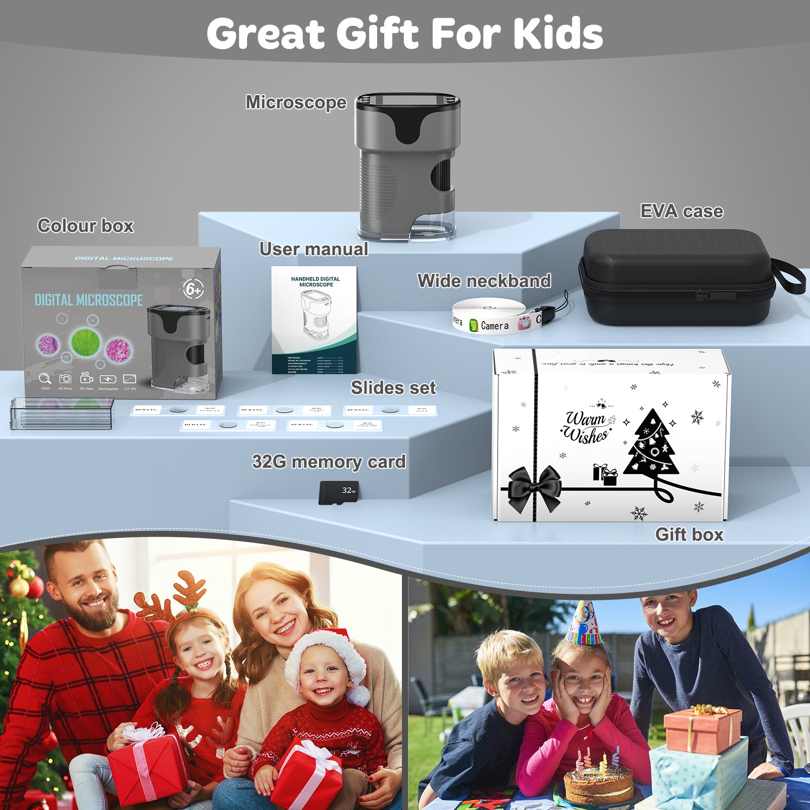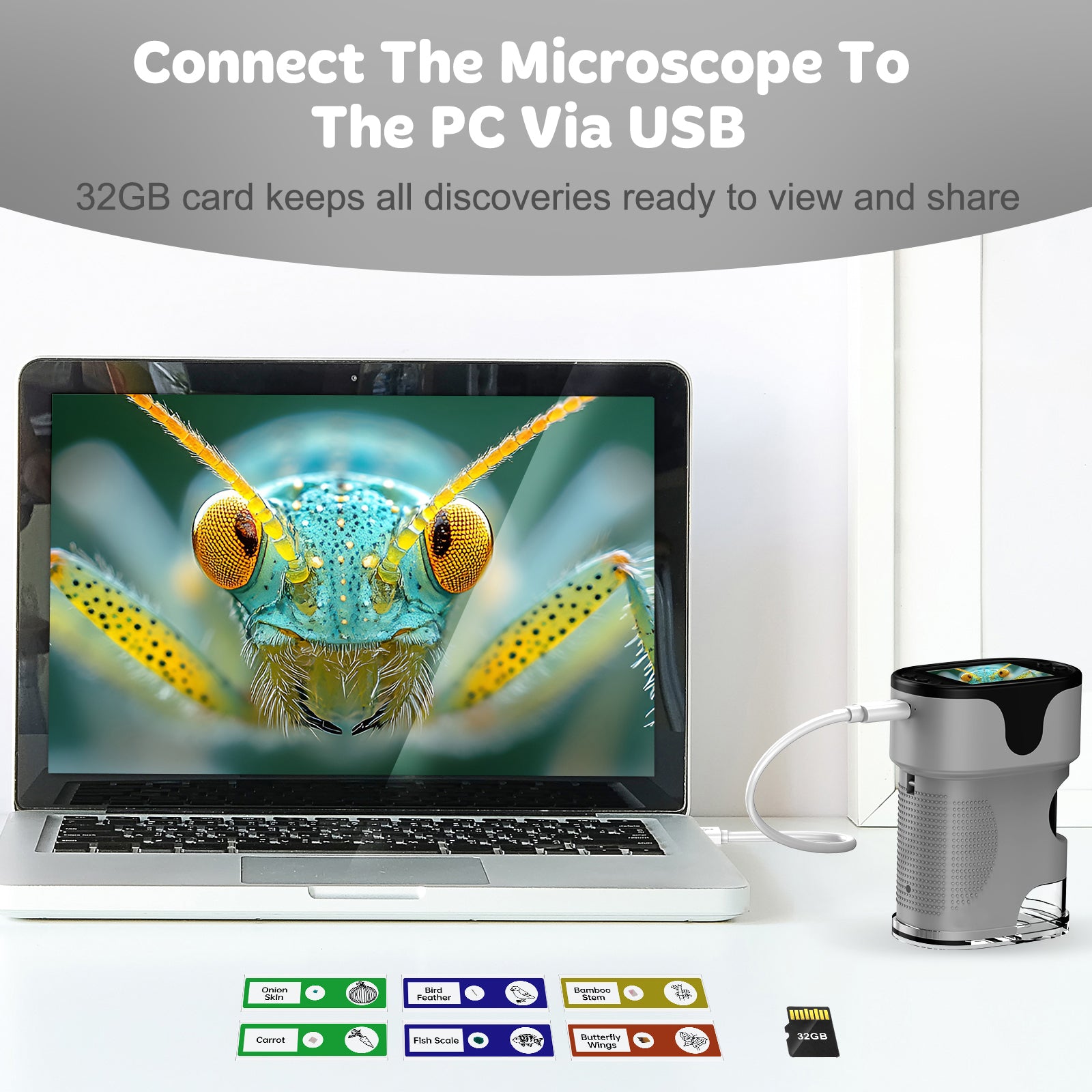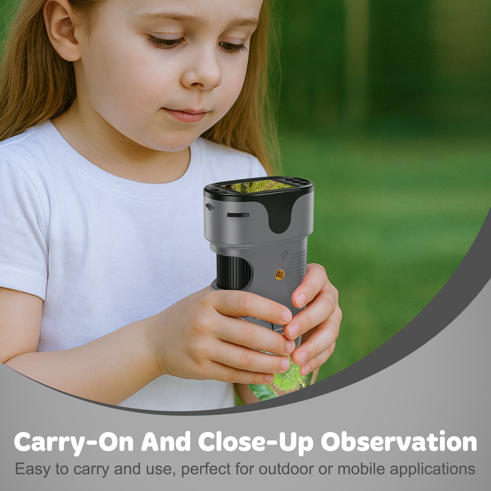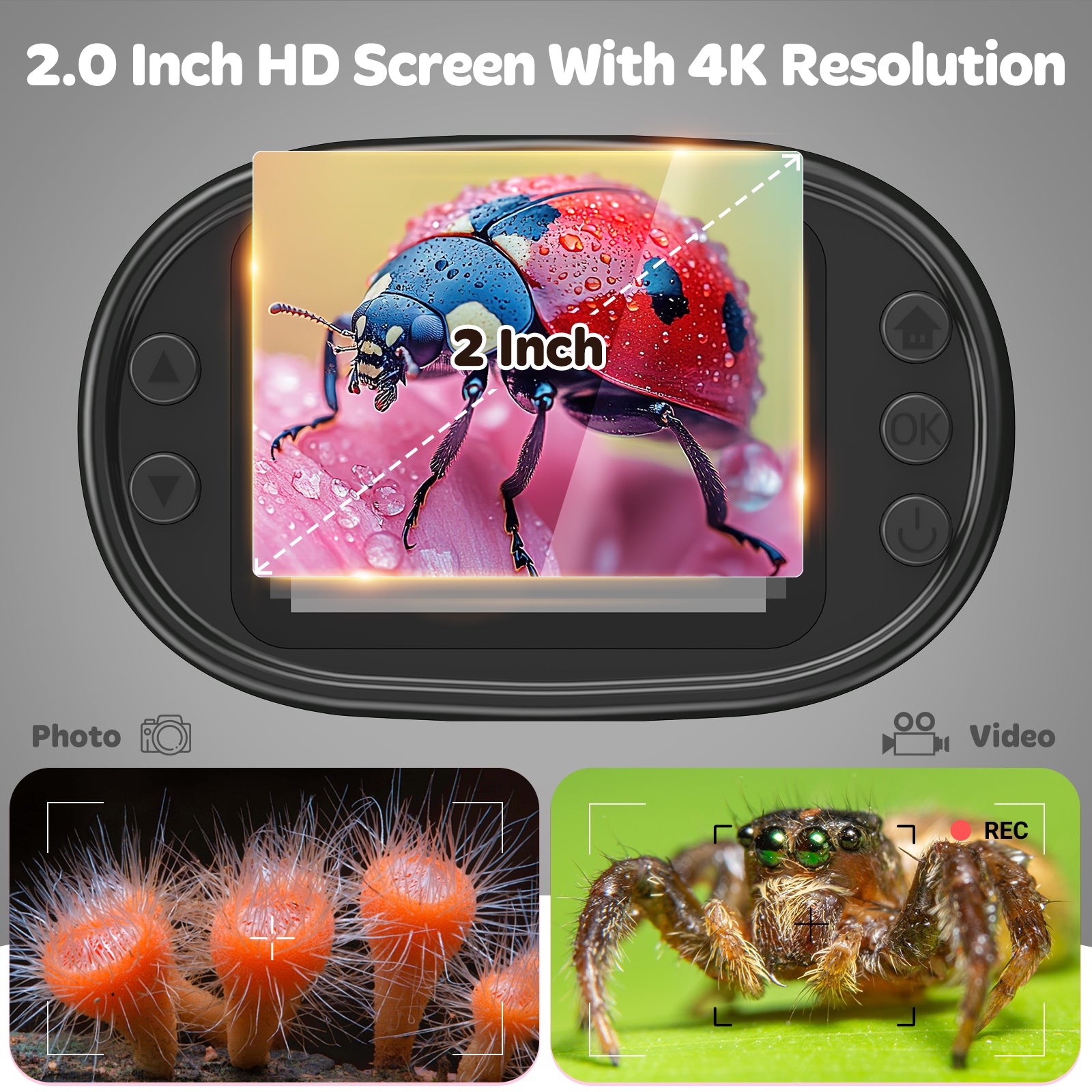 【4K Screen Clarity】This digital microscope features a 2.0-inch 4K screen for crystal-clear visuals. The digital microscope makes it fun and easy for kids to explore science with their own eyes.