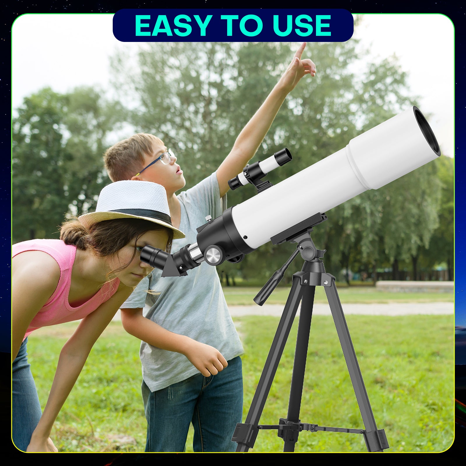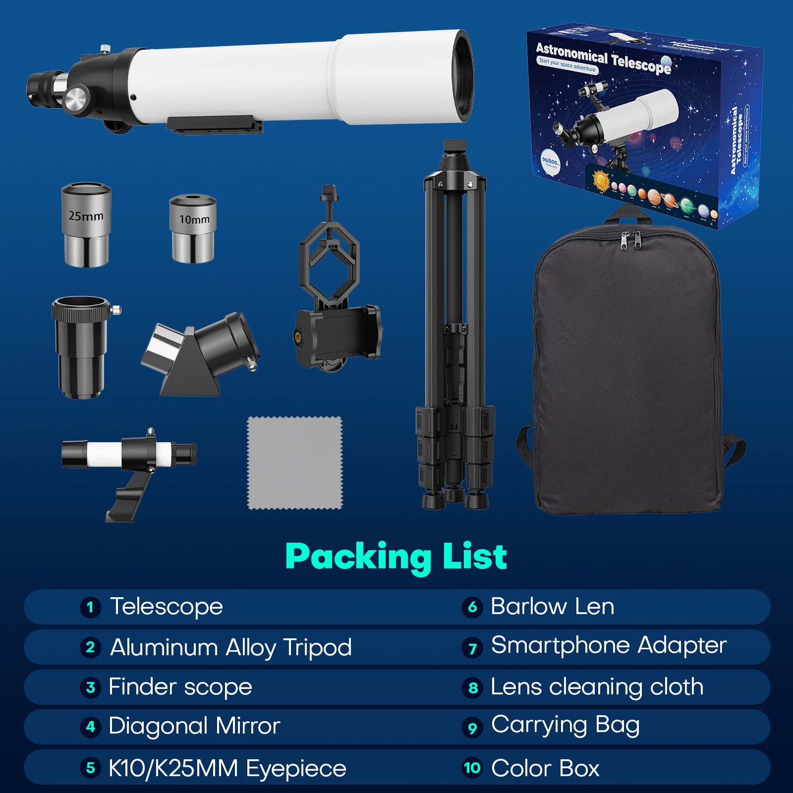 【Perfect Gift for Adults & Beginners】Easy to assemble without tools, this telescope is a thoughtful gift for astronomy lovers and first-time stargazers. Also a great beginner and kids telescope, it inspires curiosity about science and space—whether used for family observation nights, camping trips, or educational learning, it brings the wonders of the universe closer to home.